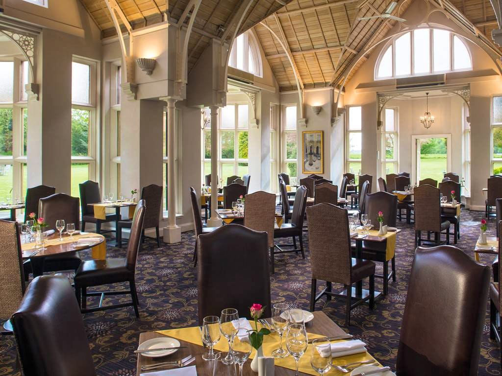 The Conservatory Restaurant, located within the picturesque Audleys Wood Hotel in Basingstoke, Hampshire, offers a unique dining experience that combines elegance with a warm, inviting atmosphere. Set amidst beautiful grounds, the restaurant is designed to provide guests with a tranquil escape while enjoying exquisite cuisine. The large windows allow natural light to flood the space, creating a bright and airy environment that enhances the dining experience.