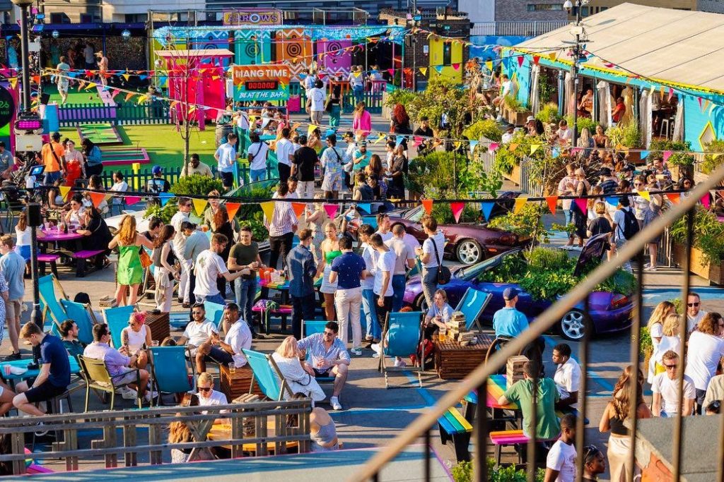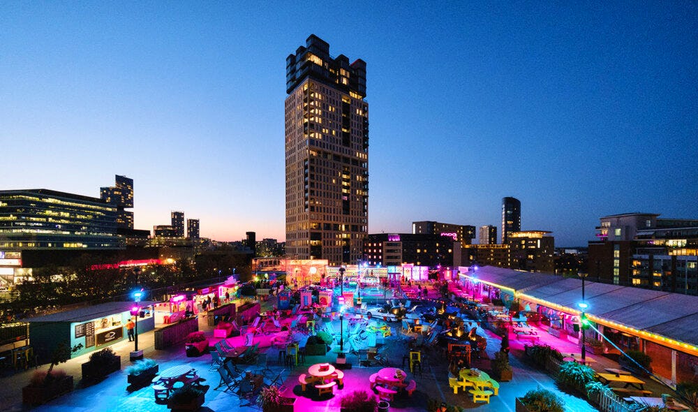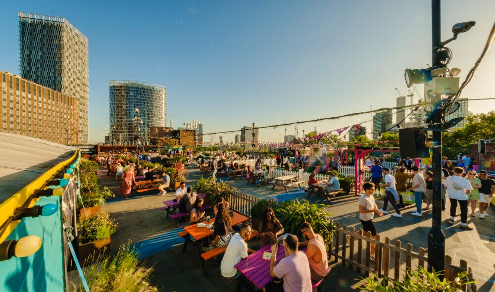 Roof East is a vibrant rooftop venue located on the eighth level of the Stratford Multistorey Car Park in London. This unique space offers a blend of leisure, entertainment, and culinary delights, making it a popular destination for both locals and visitors. With its stunning views of the London skyline and a relaxed atmosphere, Roof East provides an ideal setting for social gatherings, casual dining, and outdoor activities.