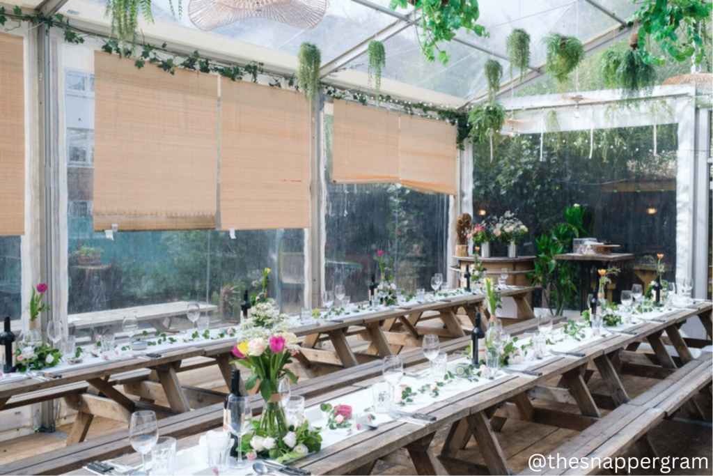 The People’s Park Tavern boasts a rustic and eclectic atmosphere that is both inviting and relaxed. The venue’s interior is characterized by its vintage decor, featuring wooden furnishings and quirky accents that add a touch of whimsy to the setting. The outdoor spaces are equally enchanting, with lush greenery and picturesque views of Victoria Park providing a serene backdrop for wedding ceremonies and receptions.